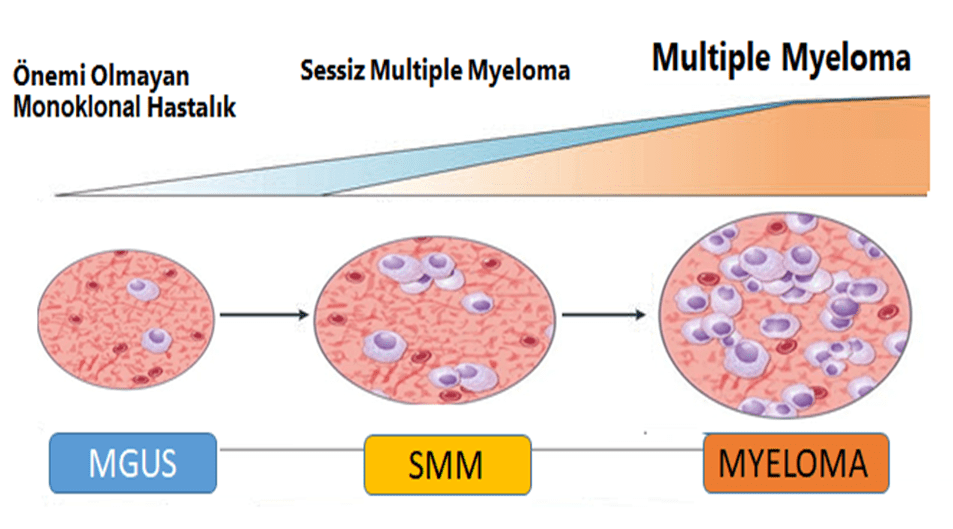 - Diğer Plazma Hücre Hastalıkları Multipl miyelom, belirsiz öneme sahip monoklonal gamopati (MGUS) ve Smoldering (İçten içe Tüten) SMM adı verilen nispeten iyi huylu bir durum olarak başlayıp aktif MM ilşerleyebilir