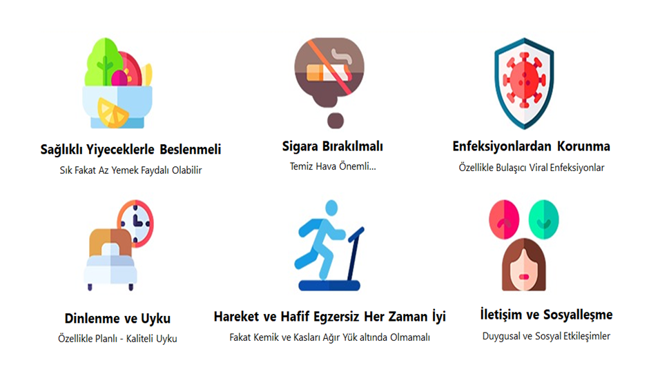• Dengeli beslenme → enfeksiyon direncini artırır, yorgunluğu azaltır.